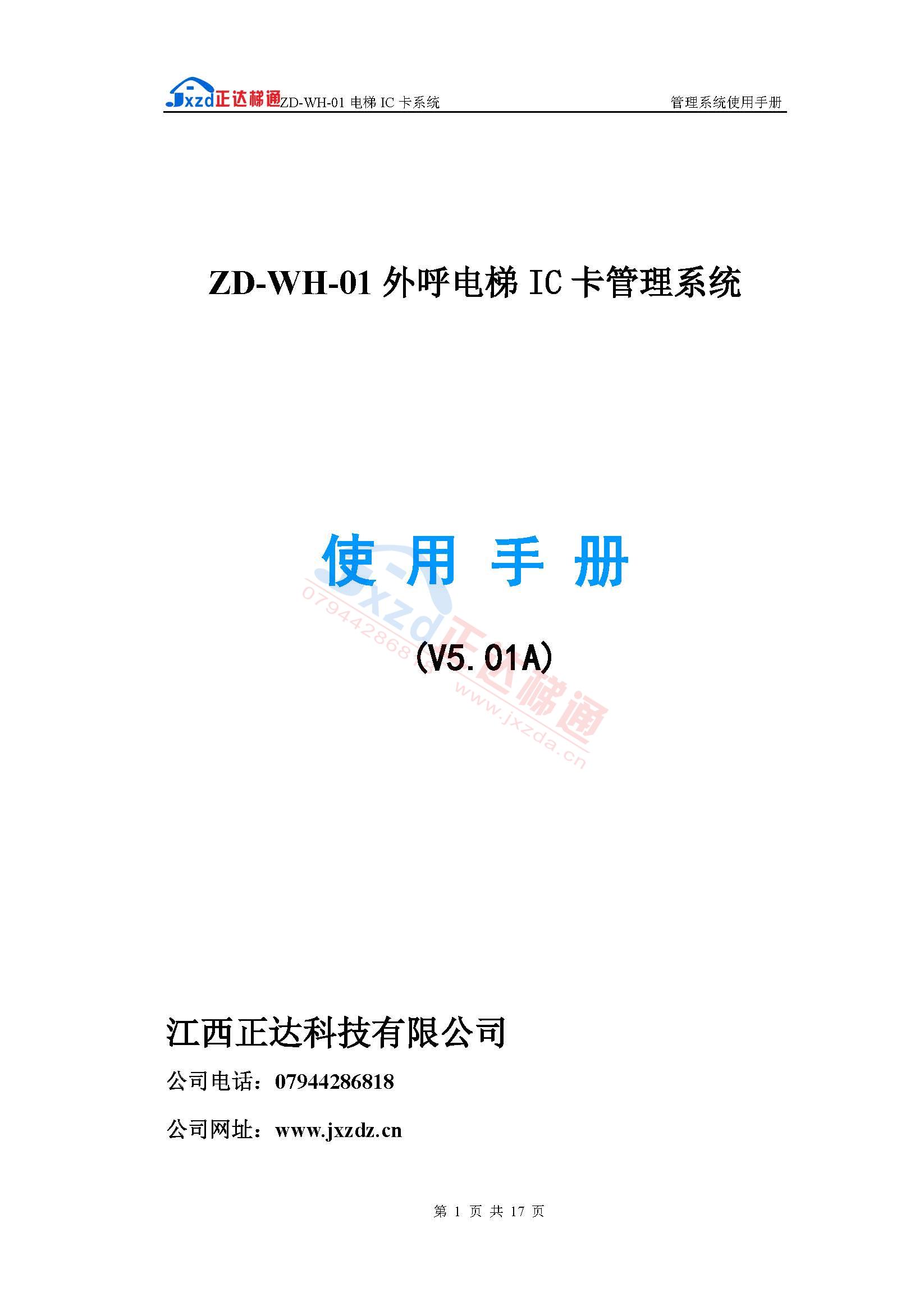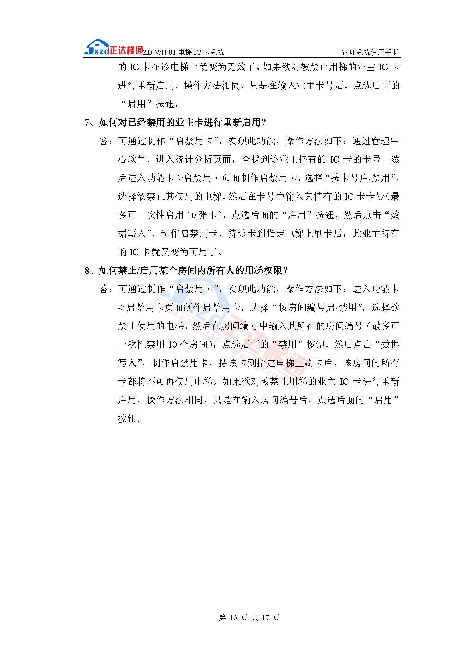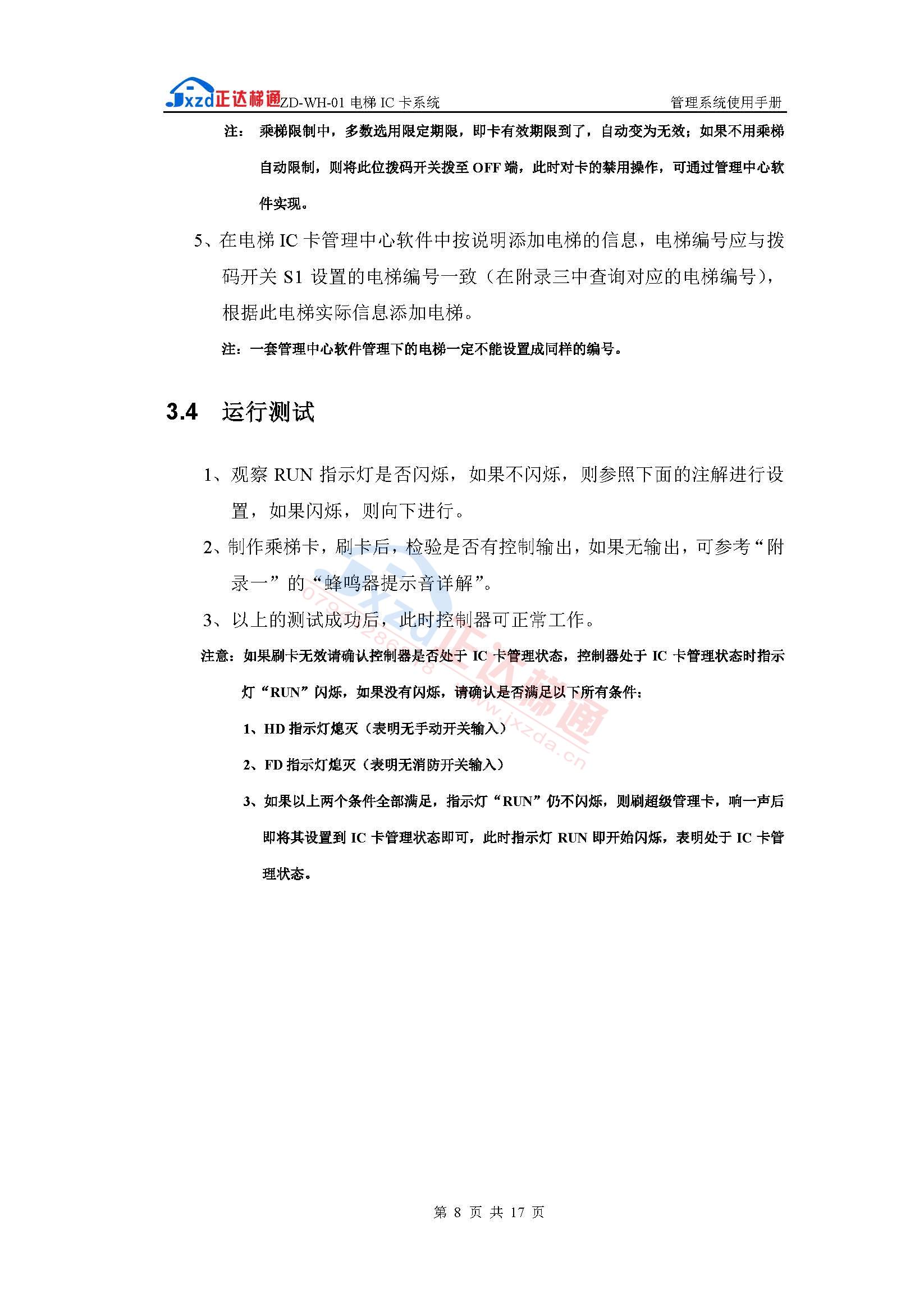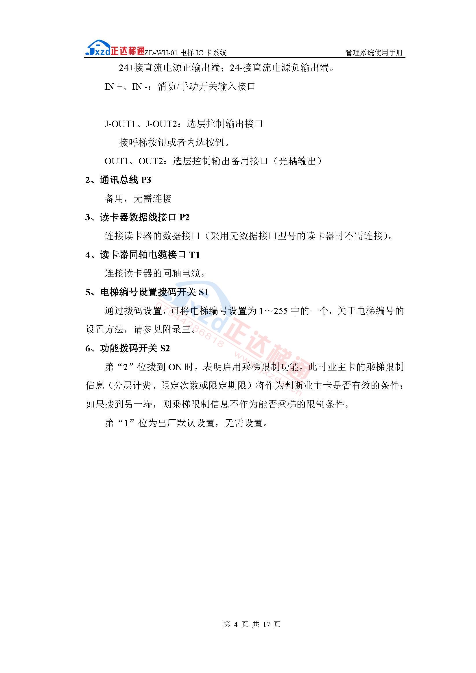 内选分层型ZD-WH-01电梯IC卡管理使用手册