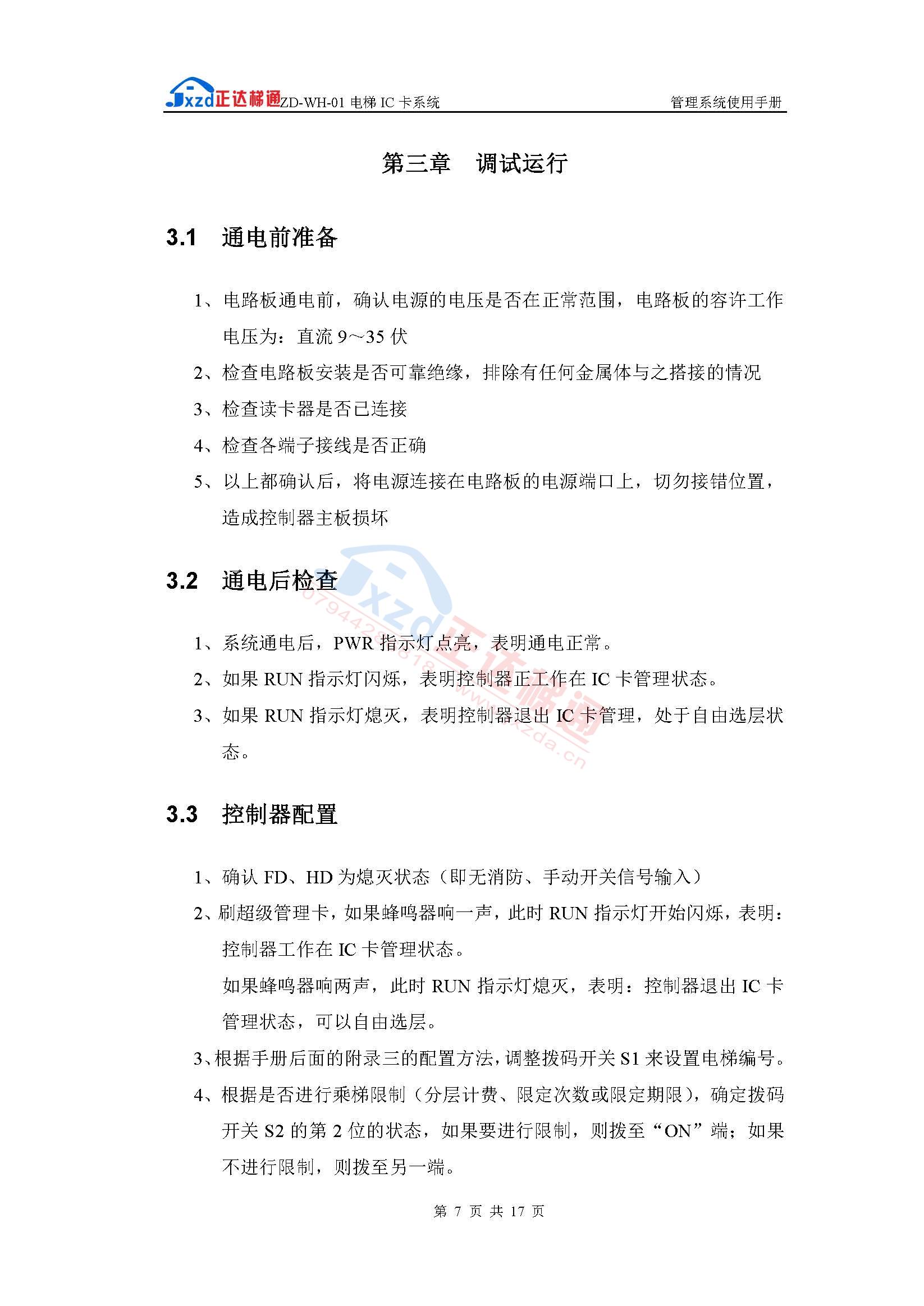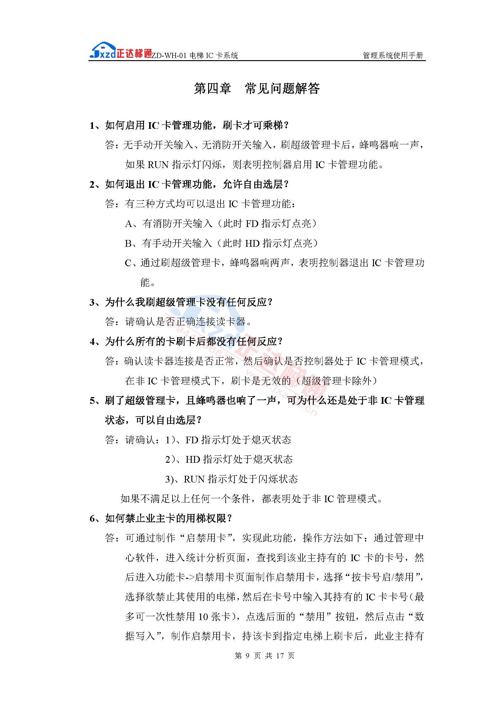 内选分层型ZD-NH-**电梯IC卡管理使用手册