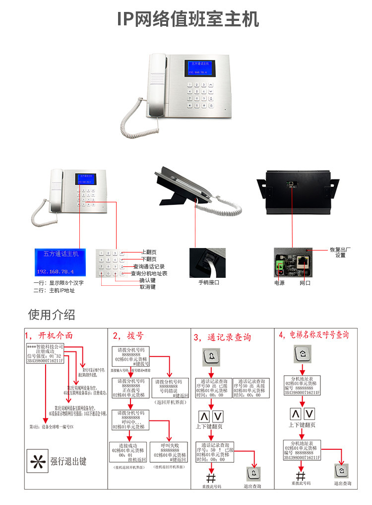 3.主机来电显示,精确智能中文显示电梯编号,如“XX栋X单元XX号电梯”。
